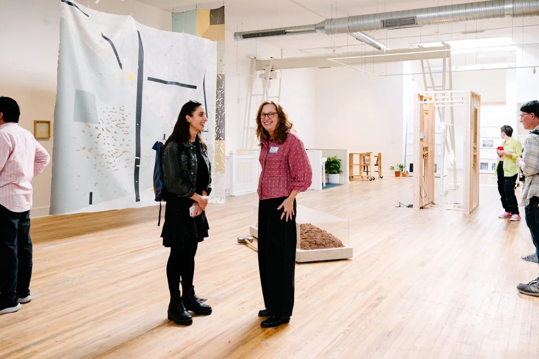 On Saturday, May 15, Making Space Bmore opened our doors to our first-ever Bromo Arts Walk! Presented by the MICA Curatorial Practice MFA Program, our exhibition, DISJUNCTION, explores the role of the built environment in transforming human experience. Guests were able to meet DISJUNCTION artists Ringo Lisko and Luis Alfonso Villalobos, as well as curator Alfonso Sanchez Herrera Lasso. In the print studio, long-term artist-in-residence Jess Lin of JESS JESS PRESS provided live risograph print demonstrations and shared work for sale in their pop-up shop.